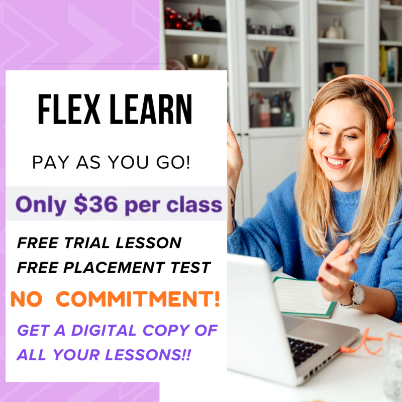 Scared of a commitment? No problem! Check out our FLEX LEARN option. You are in total control of how and when you learn!